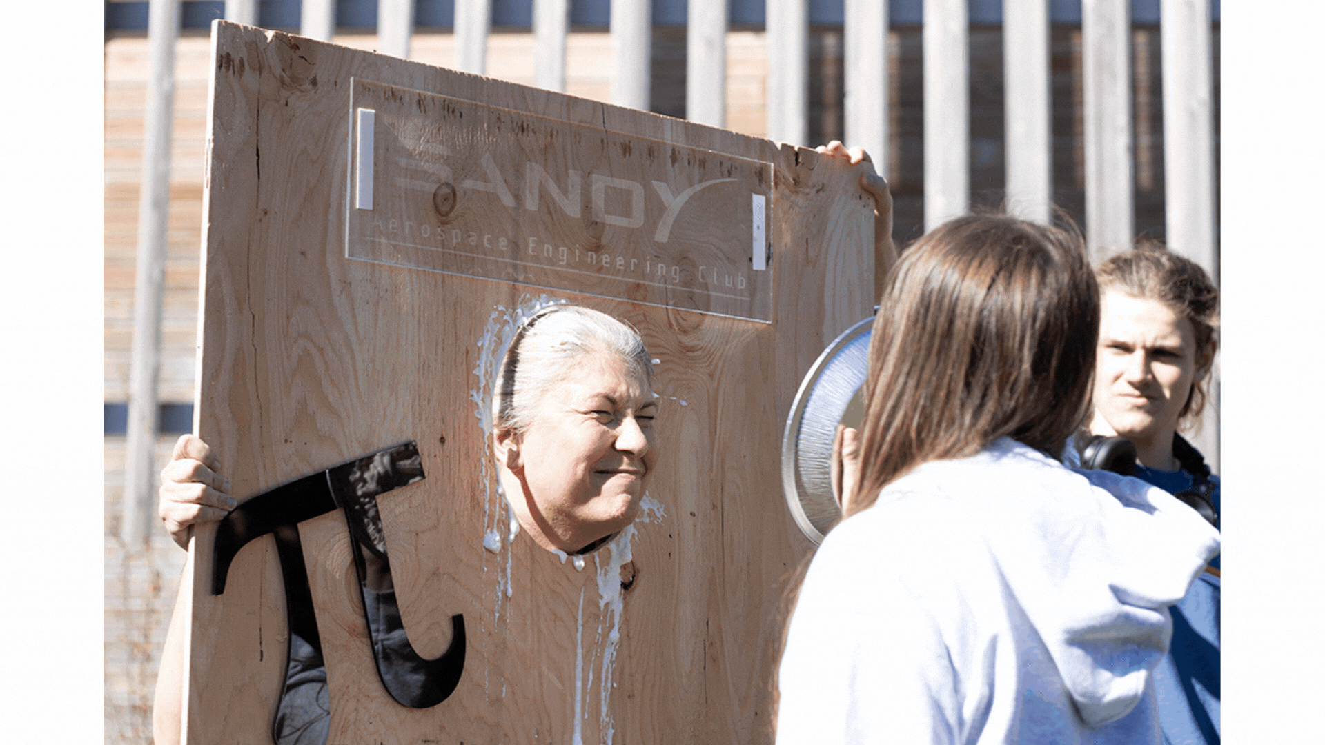 As part of a fundraising effort for the Sandy High School Aerospace Engineering Club, students at Sandy High School got into the spirit of "pi day" on Thursday, March 14 by putting some pies in the faces of their administrators. Students entered into a raffle to win the opportunity for the "pieing," contributing more than $100 for the club's effort to purchase a weather balloon.